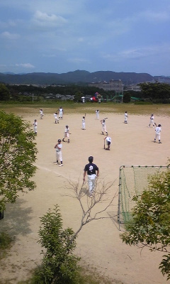 雨降る中、練習開始。幸い雨もやんで少しムシムシしましたが無事終了。